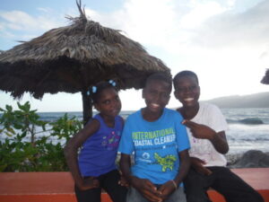 From left, Alesandra, Luis Miguel, Alexander hang out on the Jacmel boardwalk.